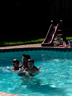The FIRST day back at Mr. Bryan's, Gabriel jumped off the diving board and swam halfway across the pool. Wowsa! Mr. Bryan just inspires his students to have confidence like no other person can. All Gabriel had to do was know he was back in that backyard and it came back. But I was concerned when we arrived that first day, because there was a FOR SALE sign in Mr. Bryan's yard. We found out the second week that he is looking for something, with a pool, in Central Arlington (even closer to us - yay!), and will be teaching next year.